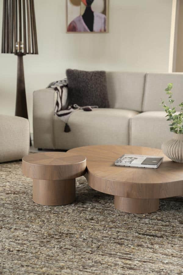 Een organische salontafel van eikenhout geeft je interieur een zachte en natuurlijke uitstraling.